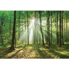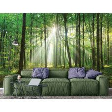 Fotobehang Bos met Zonnestralen.