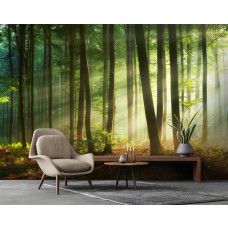 Met het fotobehang van een bos met zonnestralen die tussen de bomen doorschijnen fleurt u uw interieur helemaal op. Het fotobehang voegt direct een vleugje natuur toe aan elke kamer en creëert een rustgevende en ontspannen sfeer.