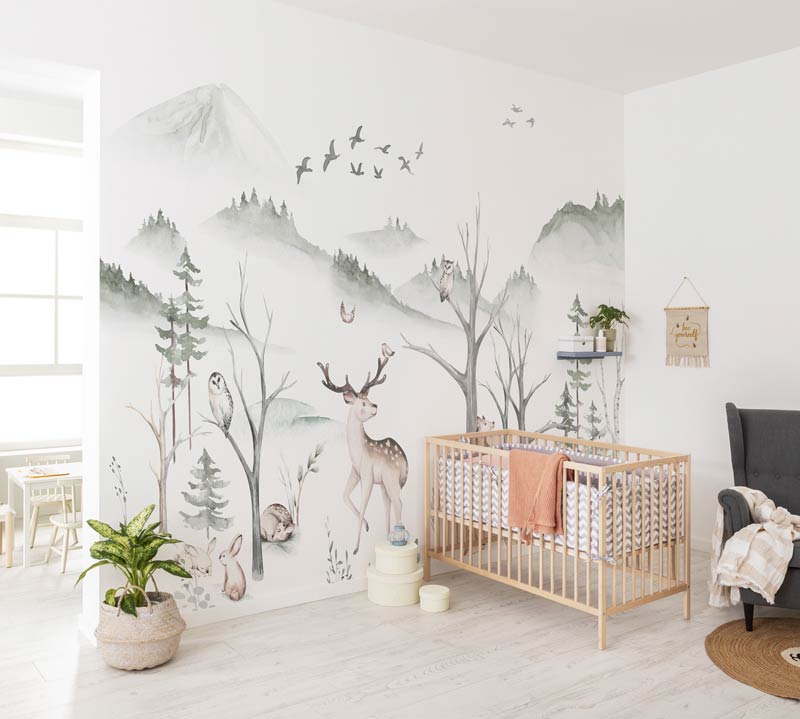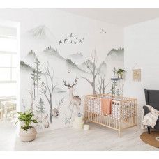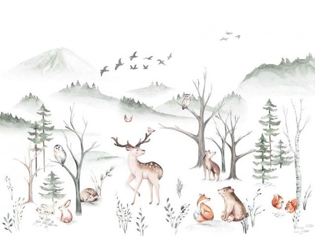 Het fotobehang van de bos dieren wordt geleverd op hoogwaardige kwaliteit vliesbehang en is de perfecte aanvulling op de kinderkamer.