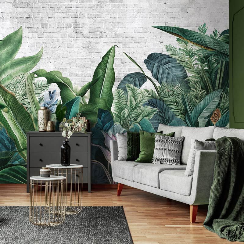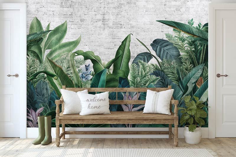 Breng de levendige energie van een tropische jungle in je huis met ons Fotobehang Botanisch Jungle Planten Pracht. Dit ontwerp toont een overvloed aan exotische planten op een achtergrond van een witte stenen muur. Perfect voor het creëren van een rustgevende en verfrissende sfeer in je interieur. Ideaal voor de woonkamer, slaapkamer of zelfs een kantoor.