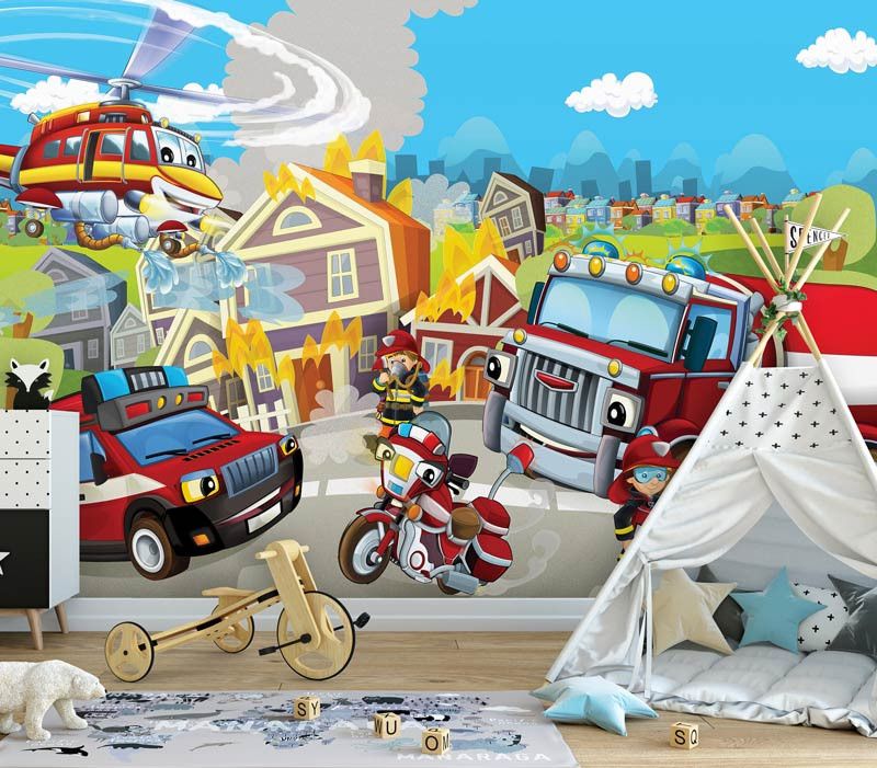 Het brandweer fotobehang is de perfecte aanvulling op de baby- of kinderkamer van elke jongen of meisje.