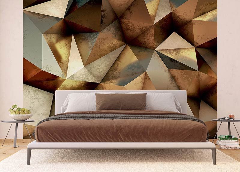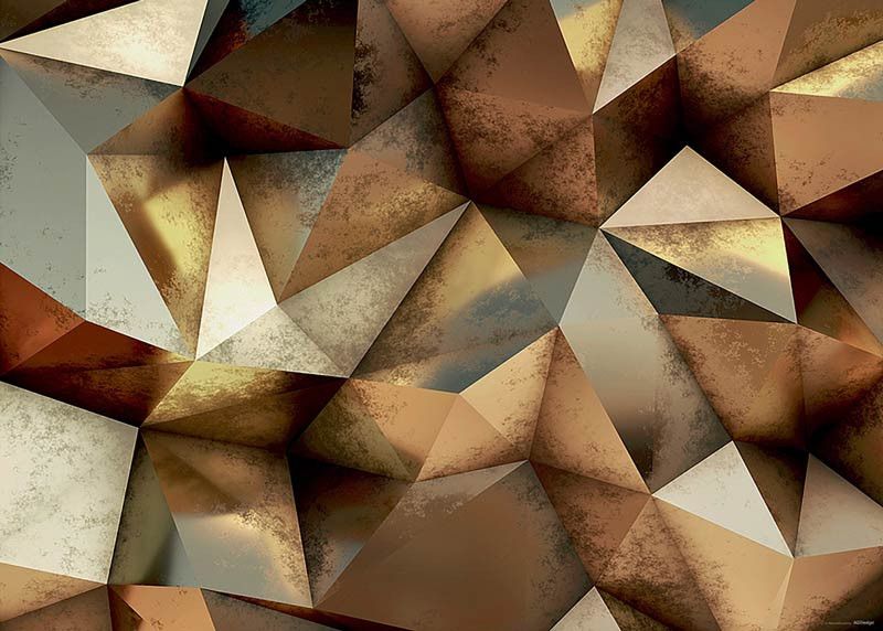 Voeg een modern en industrieel accent toe aan je interieur met dit bronzen 3D geometrische fotobehang. De metallic uitstraling en de diepte van de vormen zorgen voor een unieke en verfijnde sfeer.