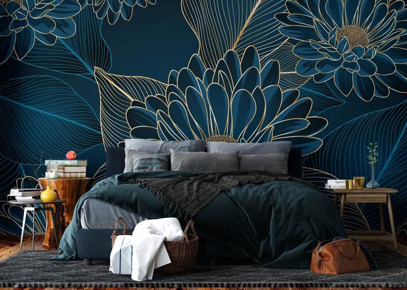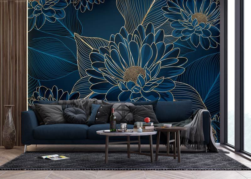 Creëer een weelderige en elegante sfeer met het fotobehang Chrysanten Bloemenpracht. De sierlijke chrysanten, omlijst met subtiele gouden accenten, brengen een verfijnde uitstraling in de ruimte. Dit ontwerp is perfect voor liefhebbers van bloemrijke en luxueuze interieurs.