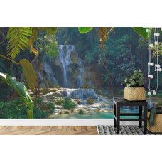 Laat je meevoeren naar een oase van rust en sereniteit met Fotobehang De Betoverende Kuang Si Waterval, Laos. Ervaar de betoverende pracht van een van de meest adembenemende watervallen van Laos, waar turquoise water zich een weg baant langs terrassen van kalksteen, omgeven door weelderige groene bossen.