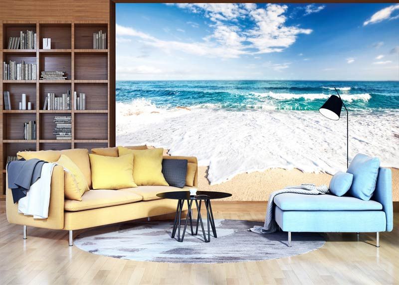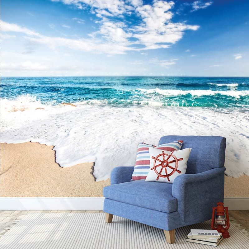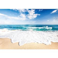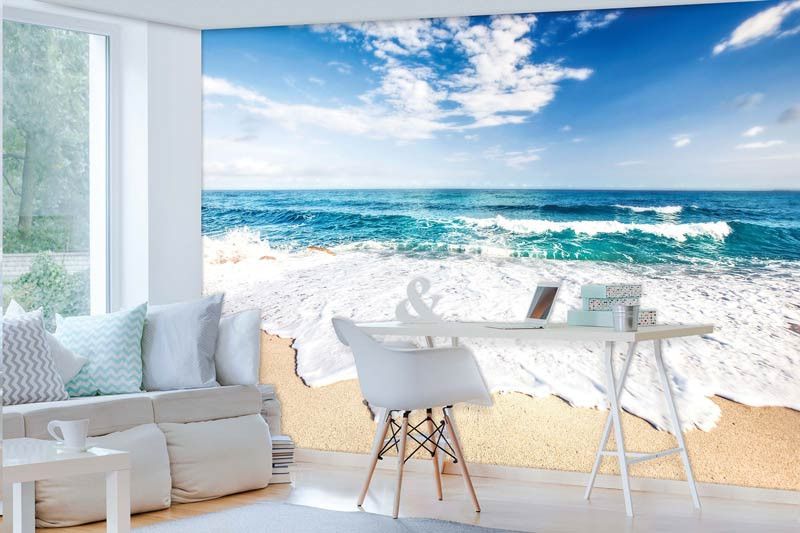 Vlies fotobehang van het strand met de prachtige, helderblauwe zee.