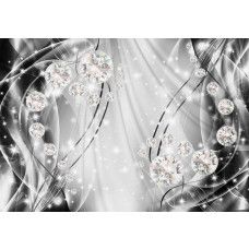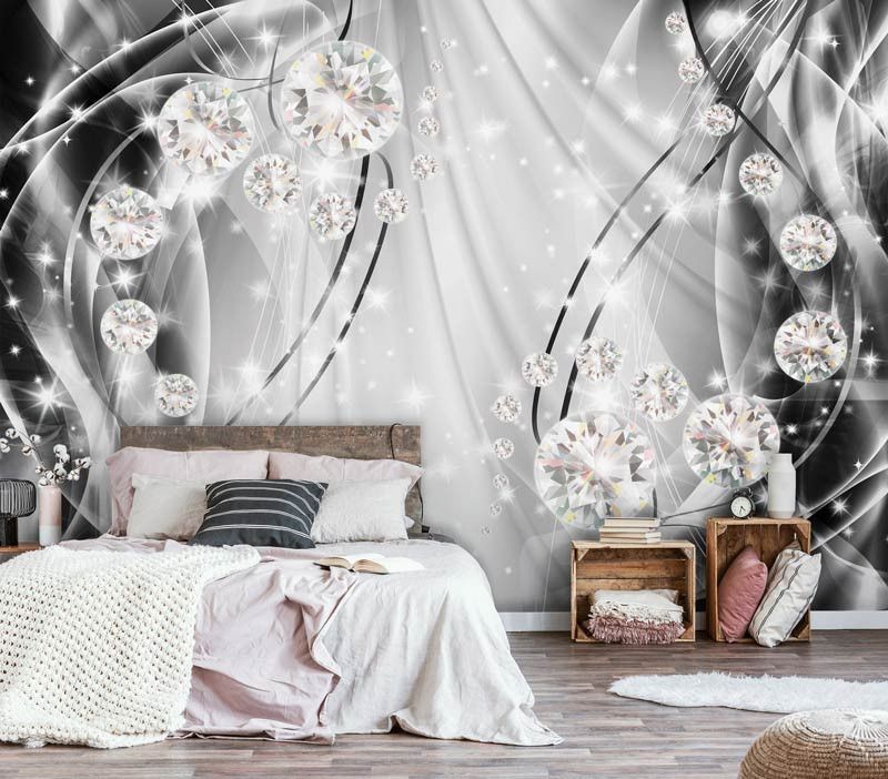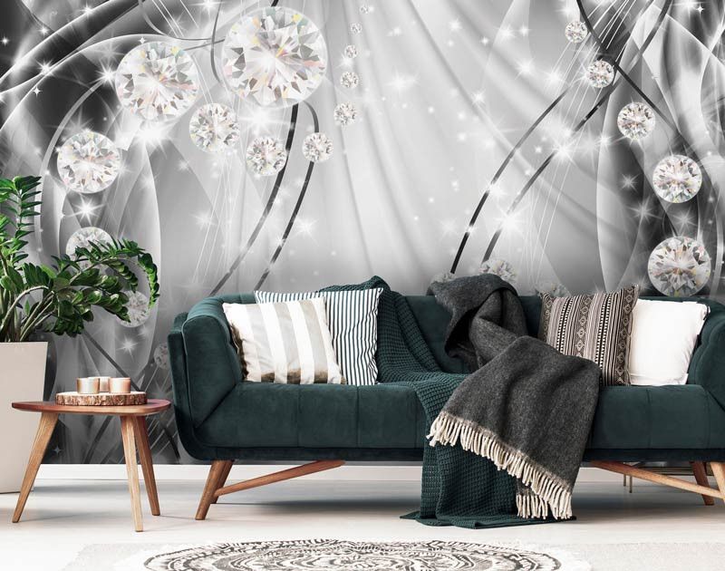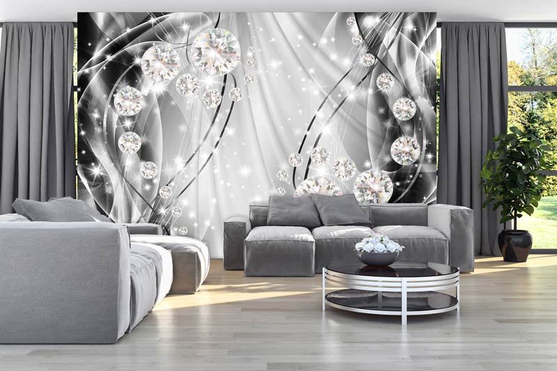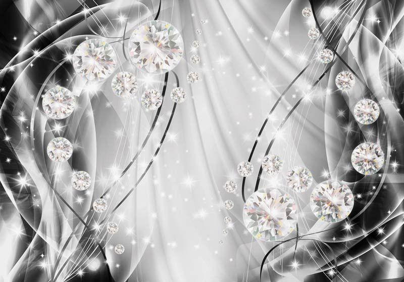 Vlies fotobehang van abstracte, glinsterende diamanten op een zilveren achtergrond.