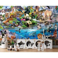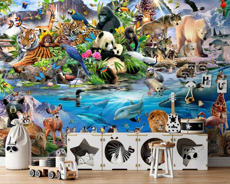 Vlies fotobehang van alle dieren die te vinden zijn in bijna elke dierentuin.