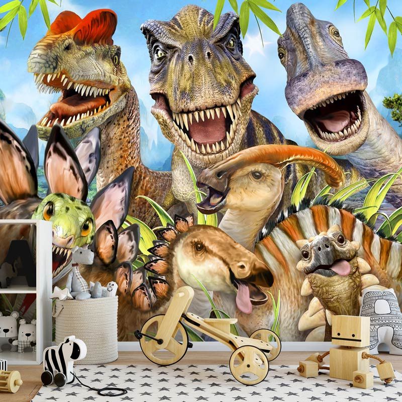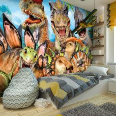 Vlies fotobehang van te gekke dinosaurussen! Een must voor elke kinderkamer.