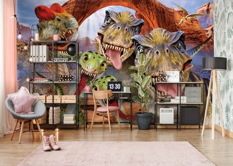 Vlies fotobehang van te gekke dinosaurussen! Een must voor elke kinderkamer.