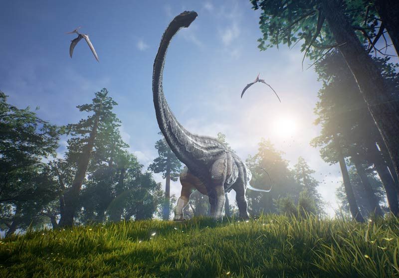 Creëer een magische sfeer in de kinderkamer met ons Fotobehang Dinosaurussen in de Zon. Laat je kinderen zich onderdompelen in een wereld vol mysterie en avontuur terwijl ze genieten van de aanblik van majestueuze dinosaurussen badend in het zonlicht.