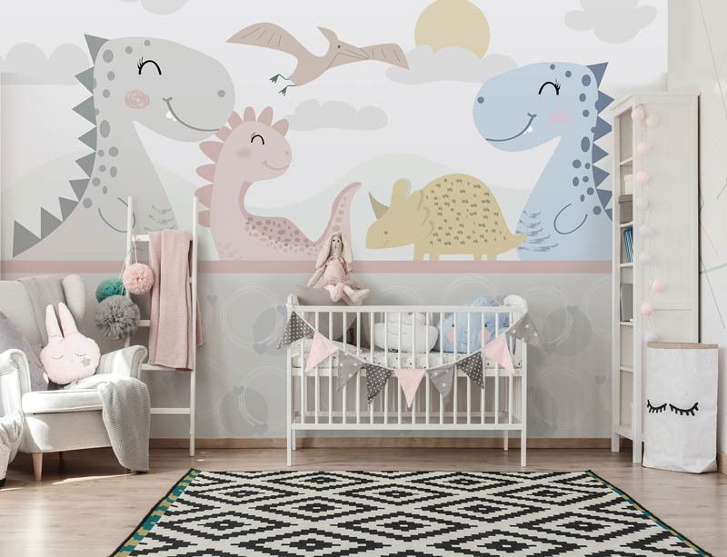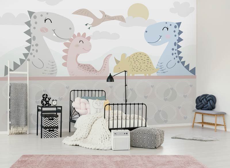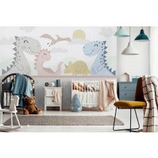 Het dinosaurussen fotobehang geeft iedere kinderkamer en babykamer een unieke uitstraling.