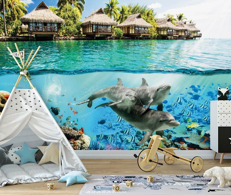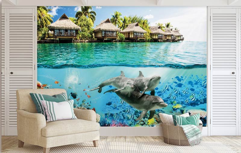 Met het fotobehang van de dolfijnen brengt u een echte eyecatcher aan de muur en bovendien is het de perfecte aanvulling op iedere ruimte.