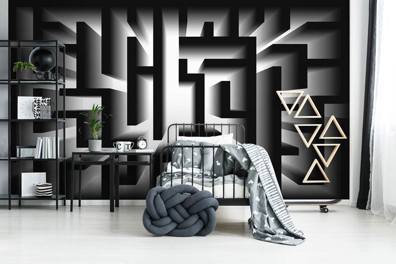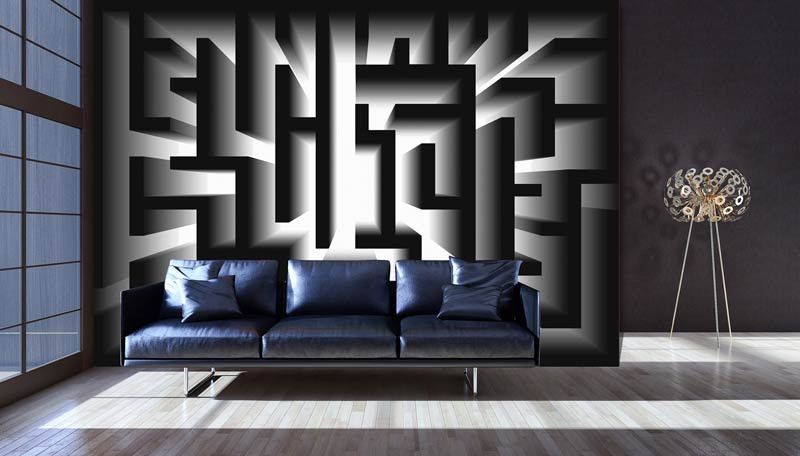 Vlies fotobehang van een abstract, zwart-wit doolhof.