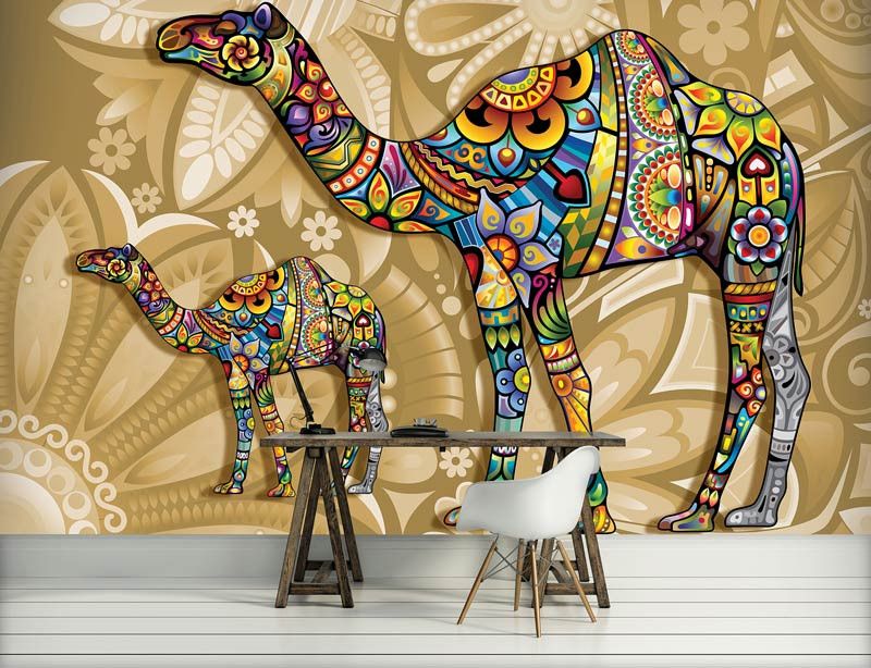 Het fotobehang van dromedaris zorgt voor een unieke uitstraling in de: woonkamer, slaapkamer, hal, keuken, kantoor, hobbyruimte of iedere andere ruimte.