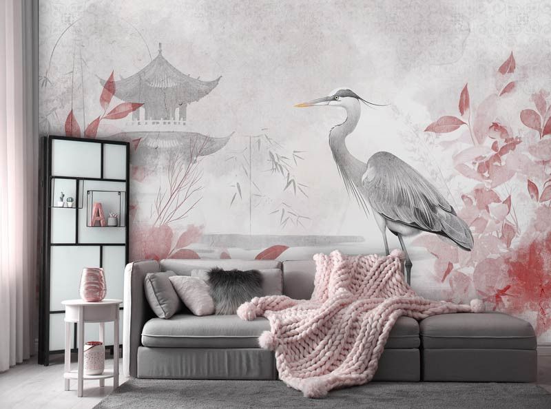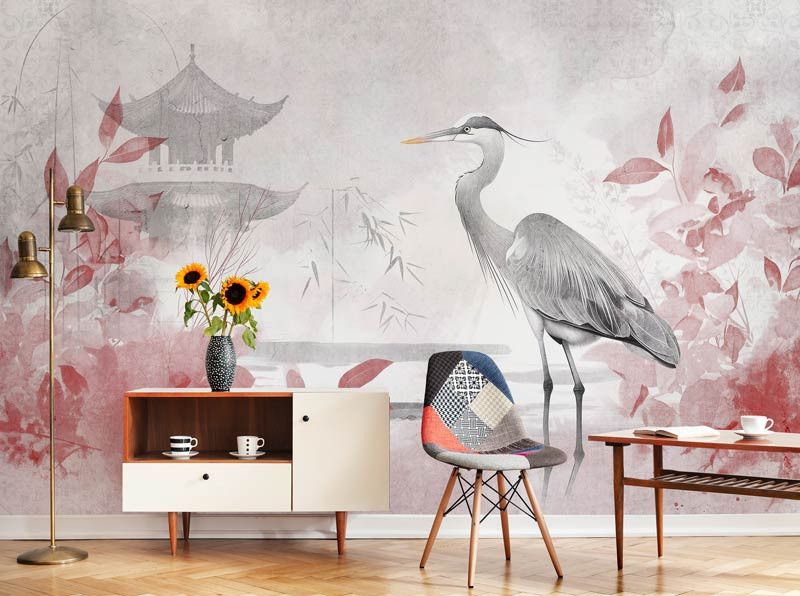 Breng rust en verfijning in je interieur met fotobehang elegante reiger. Dit prachtige ontwerp toont een sierlijke reiger te midden van subtiele natuurlijke elementen, wat zorgt voor een serene en stijlvolle uitstraling. De zachte kleuren en gedetailleerde weergave maken dit behang een perfecte keuze voor zowel moderne als klassieke interieurs.