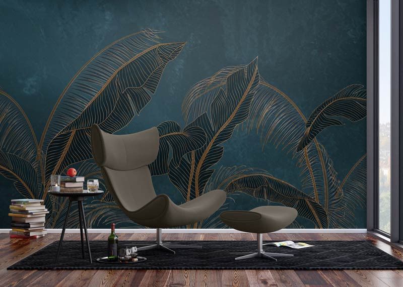 Haal een tropisch paradijs in huis met het fotobehang Exotische Palmbladeren. Dit elegante ontwerp combineert grote groene palmbladeren met subtiele gouden accenten, waardoor een verfijnd en sfeervol contrast ontstaat. De combinatie van natuur en luxe maakt dit behang een stijlvolle blikvanger in elke ruimte.