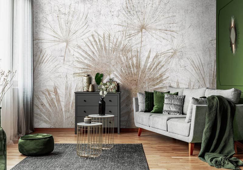 Fotobehang Exotische Planten in Beton