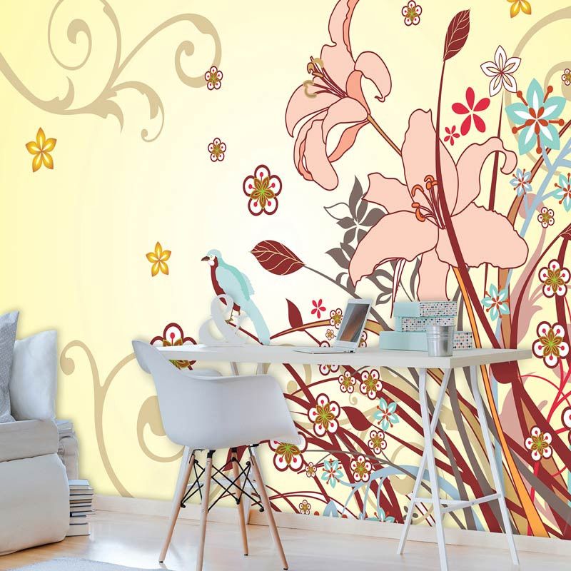 Vlies fotobehang van prachtig bloemenpatroon. Fleurt de: slaapkamer, woonkamer, hal, kantoor of iedere andere ruimte helemaal op.