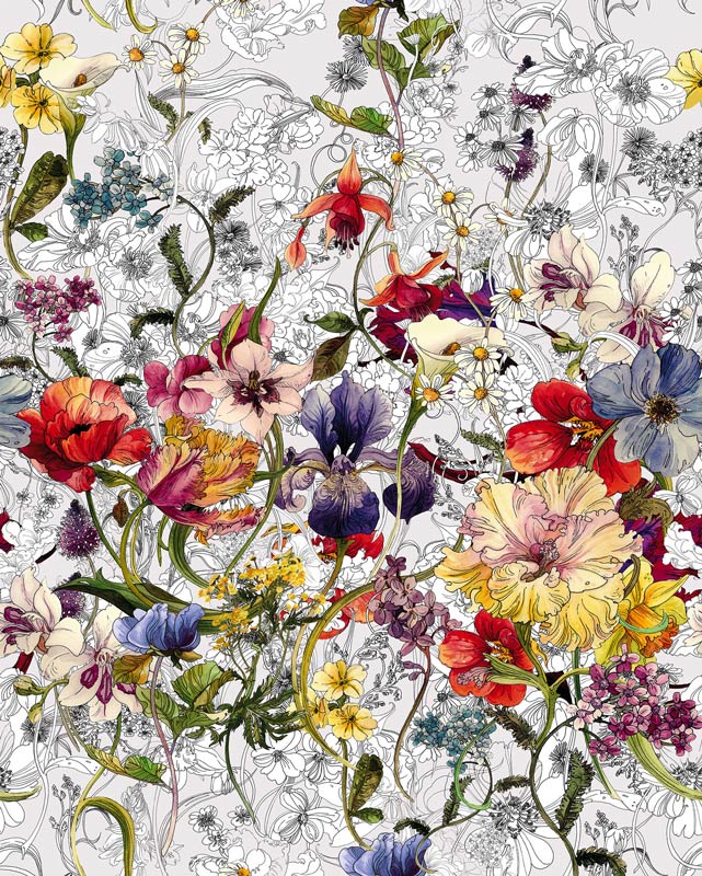 Bloemenbehang in een 3D-look brengen de bloemensfeer in huis!