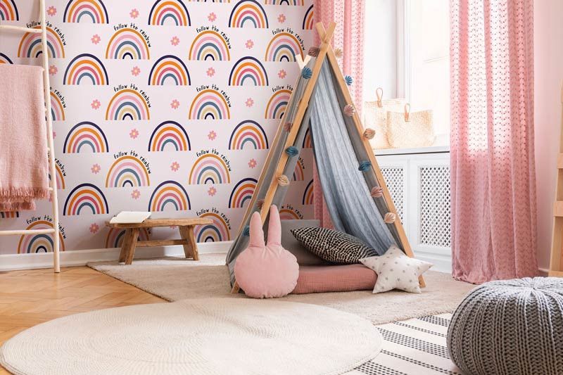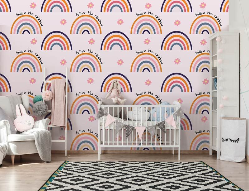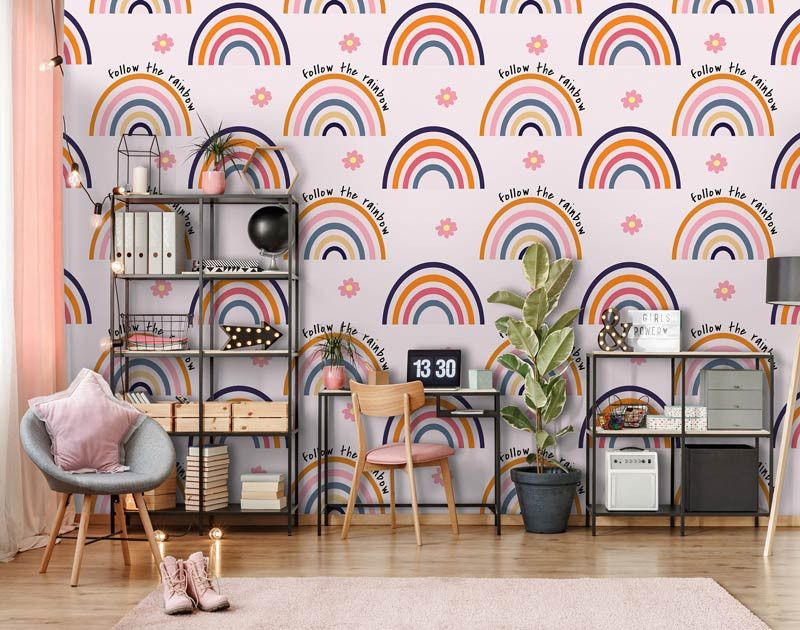 Dit opvallende fotobehang is eenvoudig op maat te bestellen en is uitermate geschikt voor kinderkamers, speelruimtes of creatieve studio's. Laat de regenboog je ruimte oplichten en inspireer met dit kleurrijke statement.