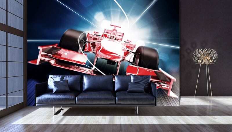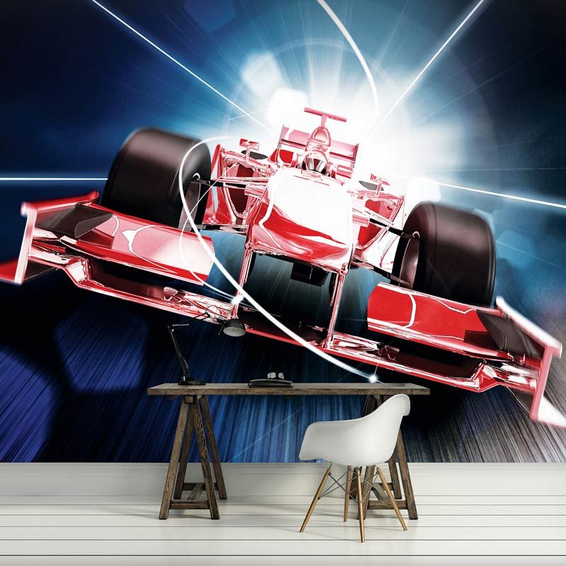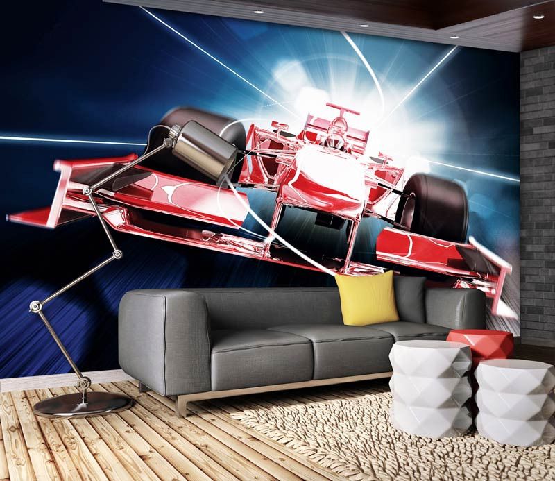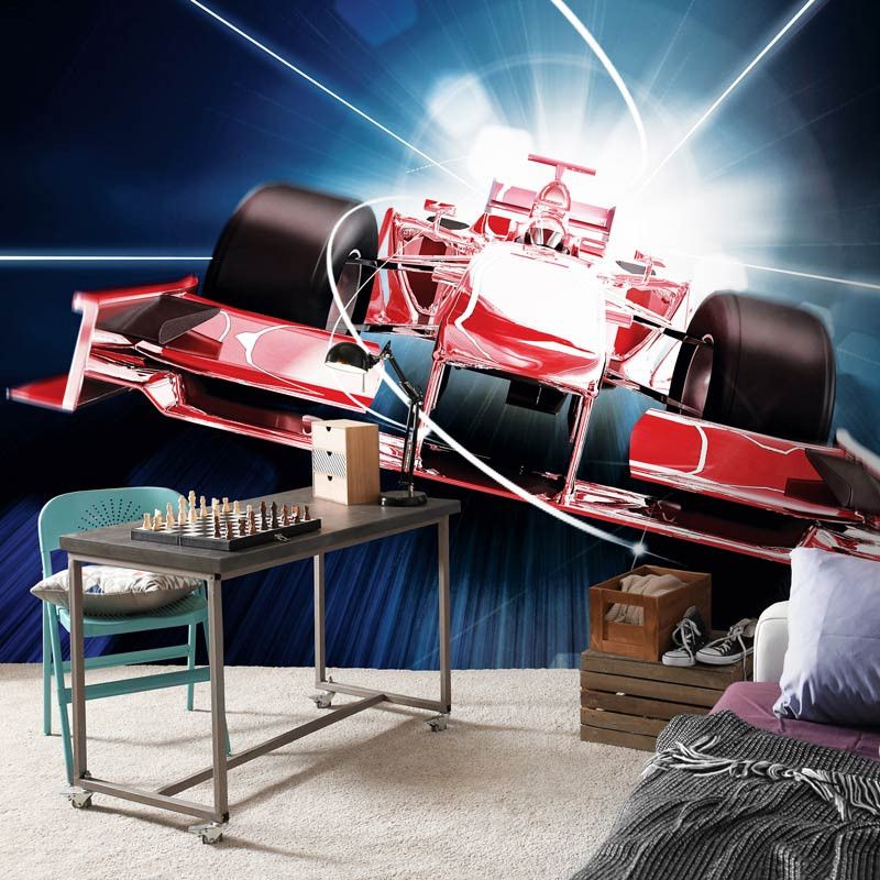 Het fotobehang van de formule 1 auto is een echte blikvanger in de: kinderkamer, woonkamer, slaapkamer, hal, keuken, kantoor, hobbyruimte of iedere andere ruimte.