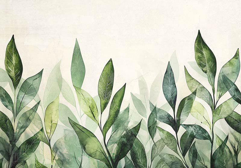 Fotobehang Fris Bladerenmotief in Aquarelstijl
