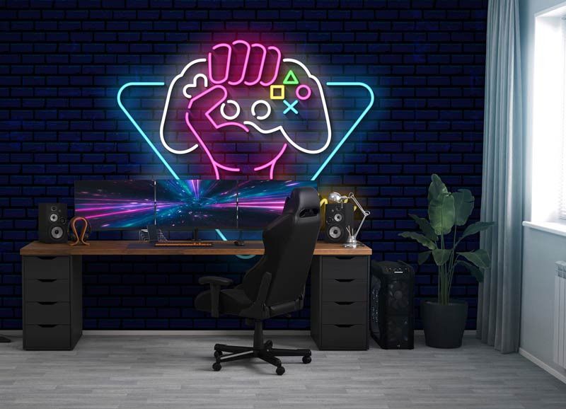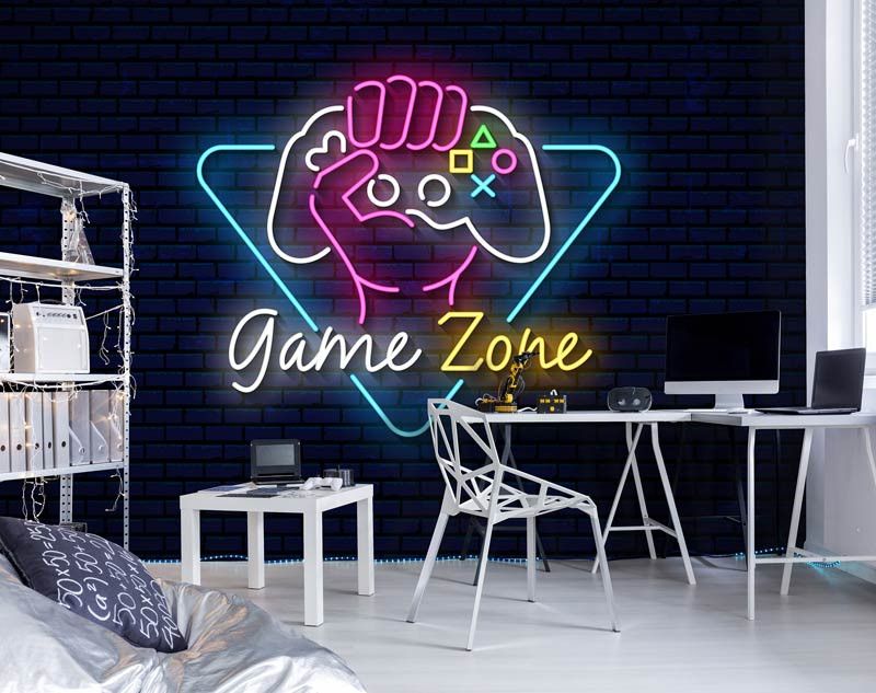 Met fotobehang Game Zone Neon Design haal je een design in huis dat gaming en stijl perfect combineert. Bestel het fotobehang op maat voor een perfecte pasvorm in jouw gamekamer en geniet dagelijks van een inspirerende omgeving die uitnodigt tot spelen en beleven.