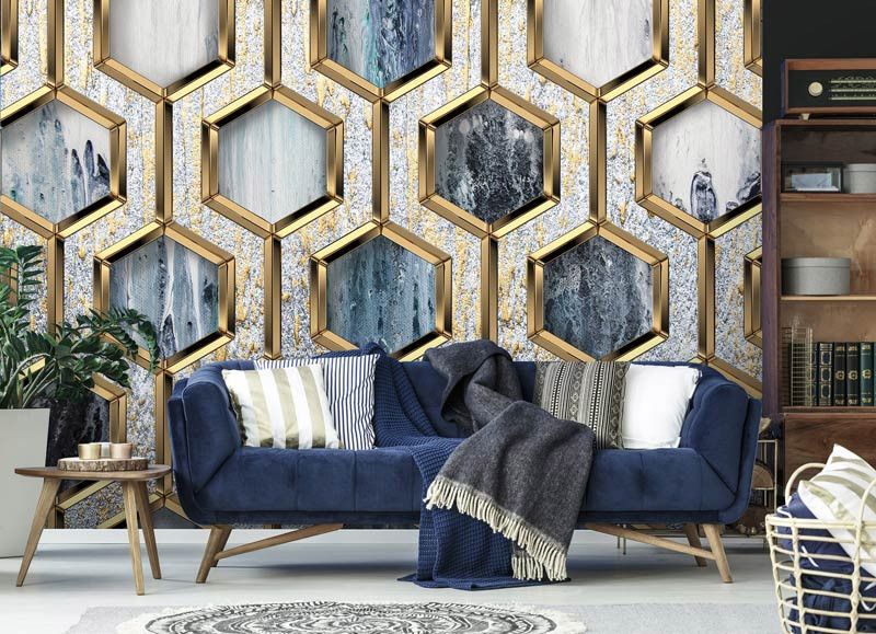 Het hexagon fotobehang zorgt voor een luxe uitstraling en is de perfecte aanvulling op iedere ruimte.