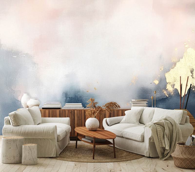 Geef je interieur een elegante uitstraling met dit fotobehang van zachte aquarelkleuren met gouden accenten. De vloeiende kleurverlopen en subtiele gouden details zorgen voor een verfijnde en rustige sfeer.