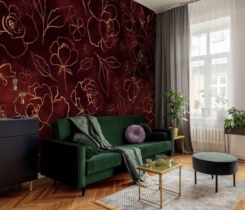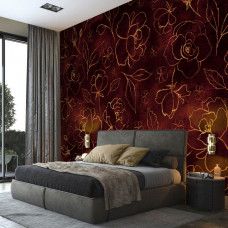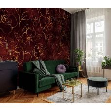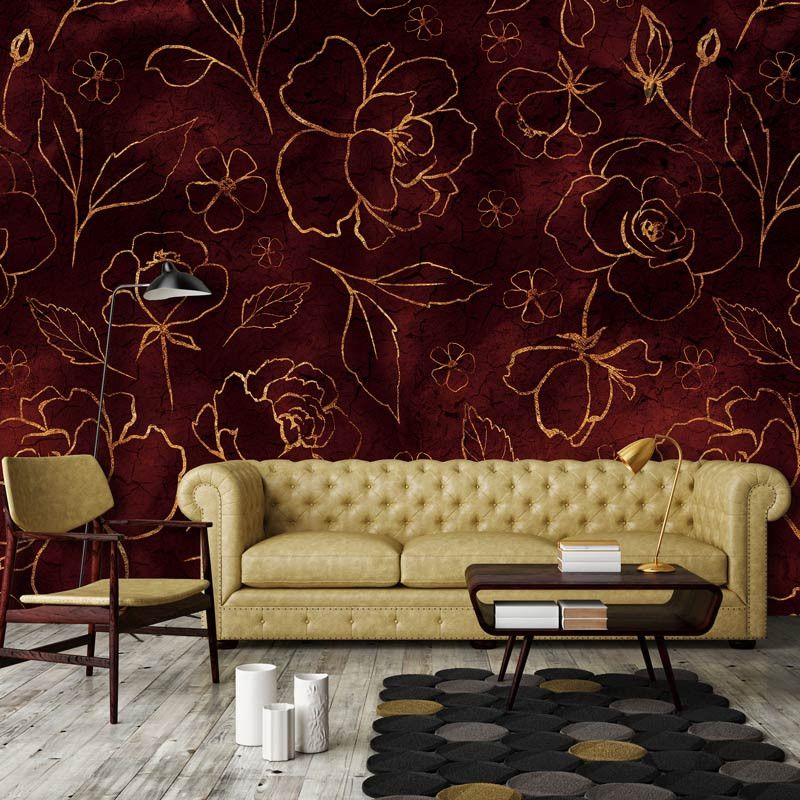 Het fotobehang van de gouden bloemen en bladeren is de perfecte aanvulling op iedere ruimte.