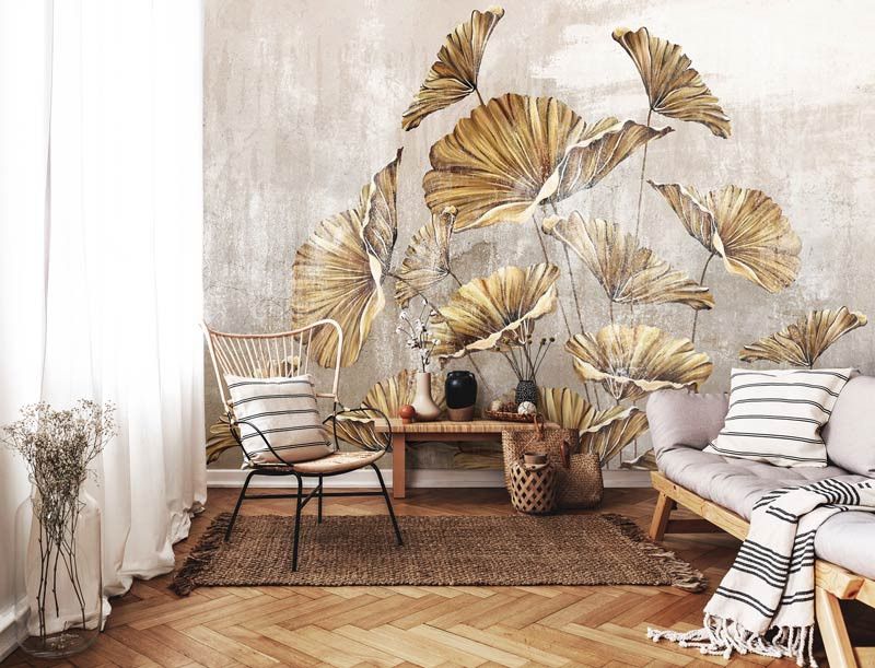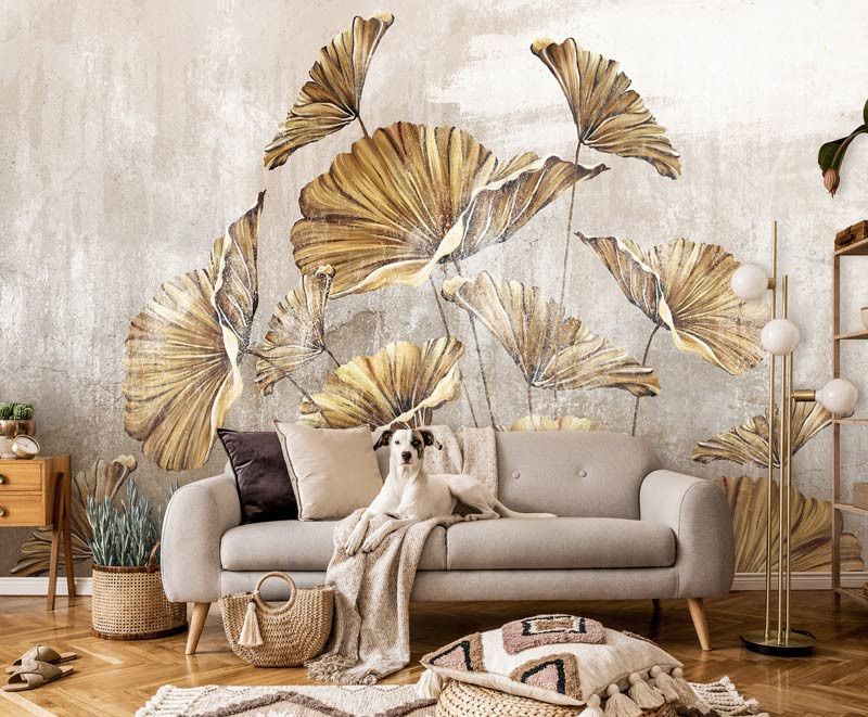 Transformeer je kamer tot een oase van elegantie met ons fotobehang Gouden Bloemen op Betonnen Muur. Dit betoverende ontwerp combineert de robuuste uitstraling van beton met de verfijnde schoonheid van gouden bloemen, waardoor een unieke en stijlvolle ambiance ontstaat.