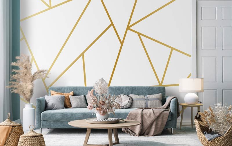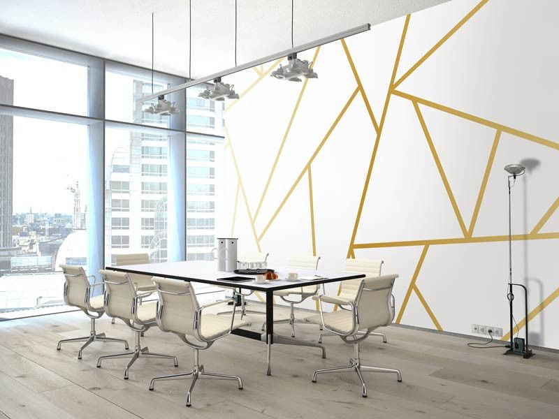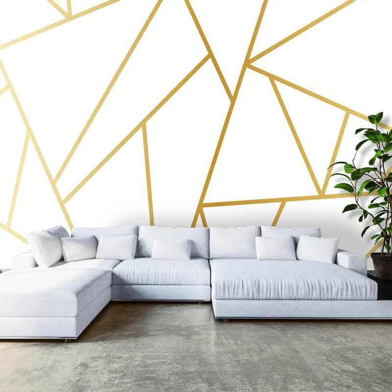 Het fotobehang van de gouden geometrische lijnen is een unieke aanvulling op elke ruimte.