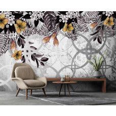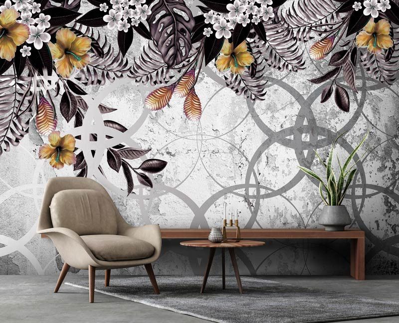 Fotobehang Gouden Planten op Beton