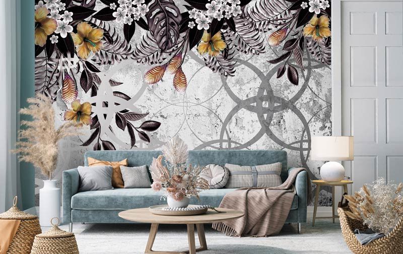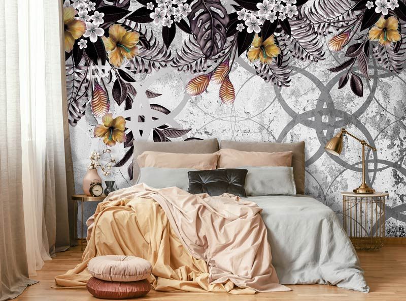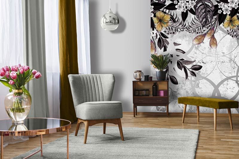 Het fotobehang van de gouden planten is een echte eyecatcher in iedere ruimte.