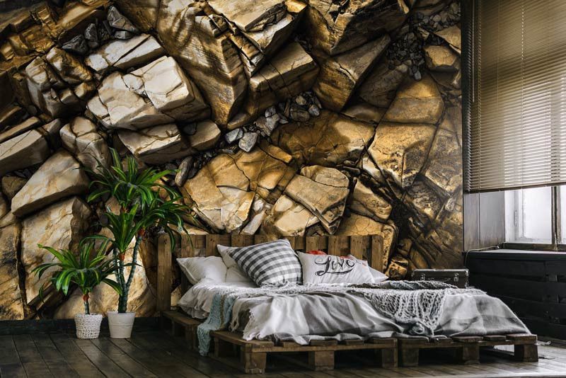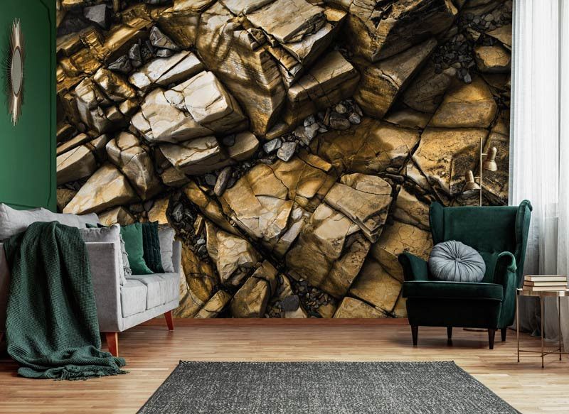 Het fotobehang van de gouden rotsen is echte eyecatcher in de: woonkamer, slaapkamer, hobbykamer, keuken, hal, kantoor of iedere andere ruimte.