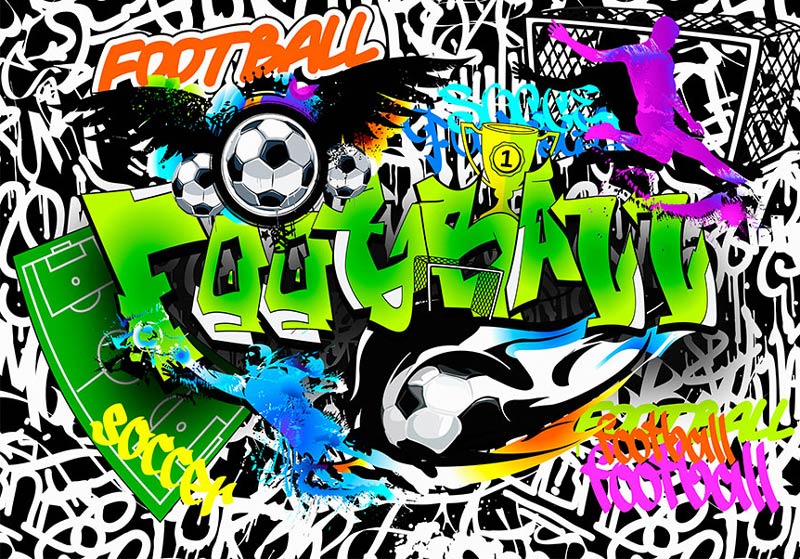 Voetbal fotobehang van een schitterende, kleurrijke, graffiti muurschildering.