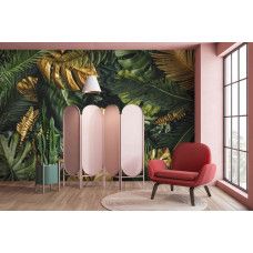Haal de jungle bij je in huis met het botanische fotobehang met daarop schitterende groene en gouden bladeren.