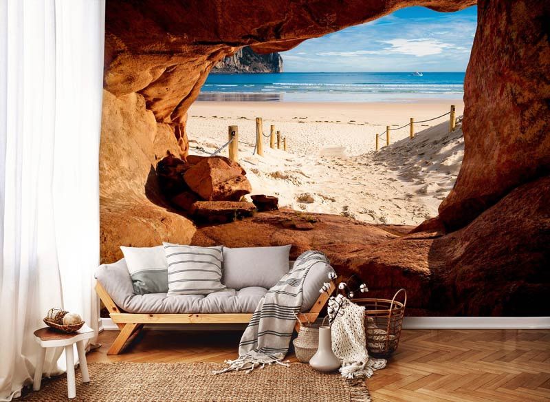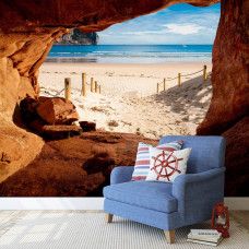 Fotobehang Grot met uitzicht op het Strandpad 3D