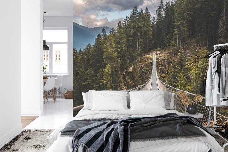 Ervaar de adembenemende schoonheid van de Dolomieten met ons fotobehang van een hangbrug. Breng de majestueuze grandeur van de bergen naar jouw interieur en creëer een sfeer van rust en sereniteit.