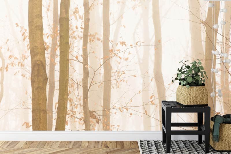 Laat je betoveren door de warme kleuren en de mysterieuze sfeer van ons Fotobehang Herfstbos in de Mist. Dwaal door de nevelige paden van het herfstbos en geniet van de rustgevende ambiance die deze prachtige afbeelding in je huis brengt.