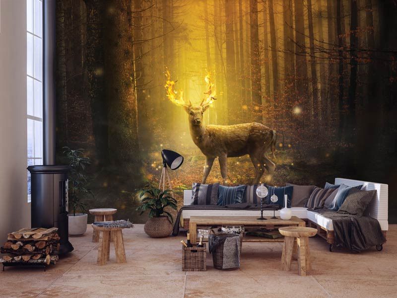 Het fotobehang van hert in het bos is de perfecte aanvulling op iedere ruimte.