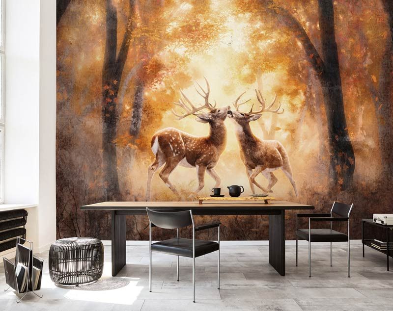 Breng de prachtige schoonheid van de natuur naar je interieur met ons Fotobehang Herten in het Bos. Dit prachtige ontwerp toont twee herten die liefdevol tegen elkaar aan staan, omringd door de rust en stilte van een boslandschap. Het zachte licht dat door de bomen valt, creëert een warme en uitnodigende sfeer, perfect voor de woonkamer, slaapkamer of kinderkamer.