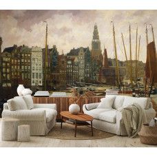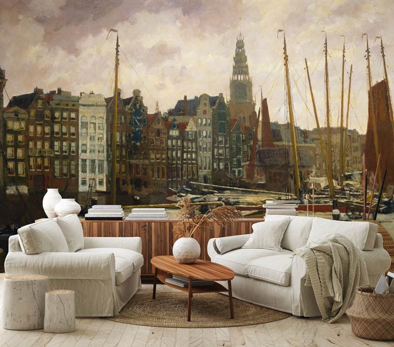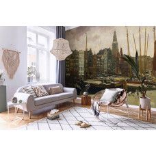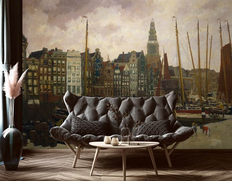 Breng de historische charme van Amsterdam in huis met fotobehang Het Damrak in Amsterdam, gebaseerd op het schilderij van George Hendrik Breitner uit circa 1903. Dit prachtige ontwerp toont de iconische huizen aan de Warmoesstraat en de imposante Oudekerkstoren. Breitner heeft met oog voor detail de levendige sfeer van het Damrak vastgelegd, toen het nog een binnenhaven was na de bouw van het Centraal Station in 1889.