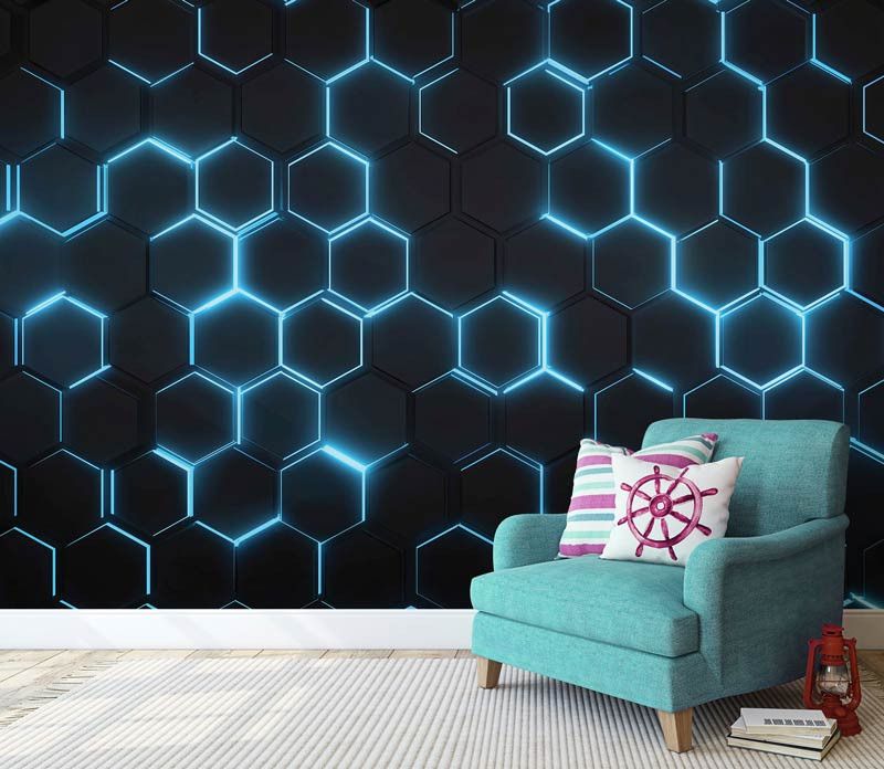 Het fotobehang Hexagon Blue Neon is veelzijdig toepasbaar. In een woonkamer vormt het een opvallend middelpunt dat een moderne look geeft. In een slaapkamer zorgt het voor een stoere en eigentijdse sfeer. In een kantoor draagt het bij aan een creatieve en inspirerende werkomgeving, terwijl het in een gamekamer de ultieme gaming vibe creëert. Zelfs in een kinderkamer zorgt dit design voor een speelse en stoere touch die volledig aansluit bij een moderne stijl.