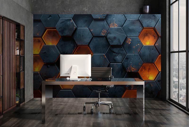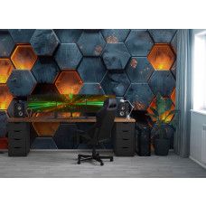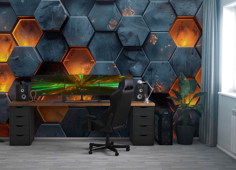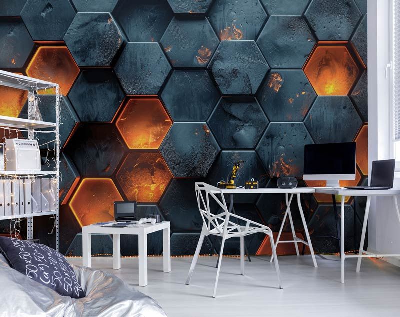 Breng een explosieve energie in je interieur met ons Fotobehang Hexagon Lava. Dit unieke fotobehang toont een 3D patroon van hexagons, waarbij sommige zijn omhuld met lava, wat een indrukwekkend en futuristisch effect creëert. Perfect voor de gamekamer, kinderkamer of elke andere ruimte, voegt dit ontwerp een spannend en krachtig element toe aan elke ruimte, dat de verbeelding prikkelt en de sfeer van avontuur en actie versterkt.