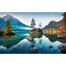 Voeg een vleugje magie toe aan je woonkamer, slaapkamer of kantoor met Fotobehang Hintersee Magie. Laat je betoveren door de schilderachtige pracht van een idyllisch meer omgeven door weelderig groen en majestueuze bergen. Ervaar de rust en sereniteit van deze betoverende omgeving terwijl je wordt meegevoerd naar een wereld van rust en schoonheid.