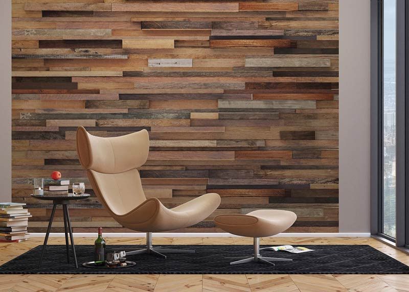 Breng de natuurlijke schoonheid van hout in je interieur met dit fotobehang. De warme, levendige bruintinten en de gedetailleerde houtnerven geven de ruimte een rustieke, organische uitstraling. Het lijkt alsof je echte houten planken op de muur hebt.
