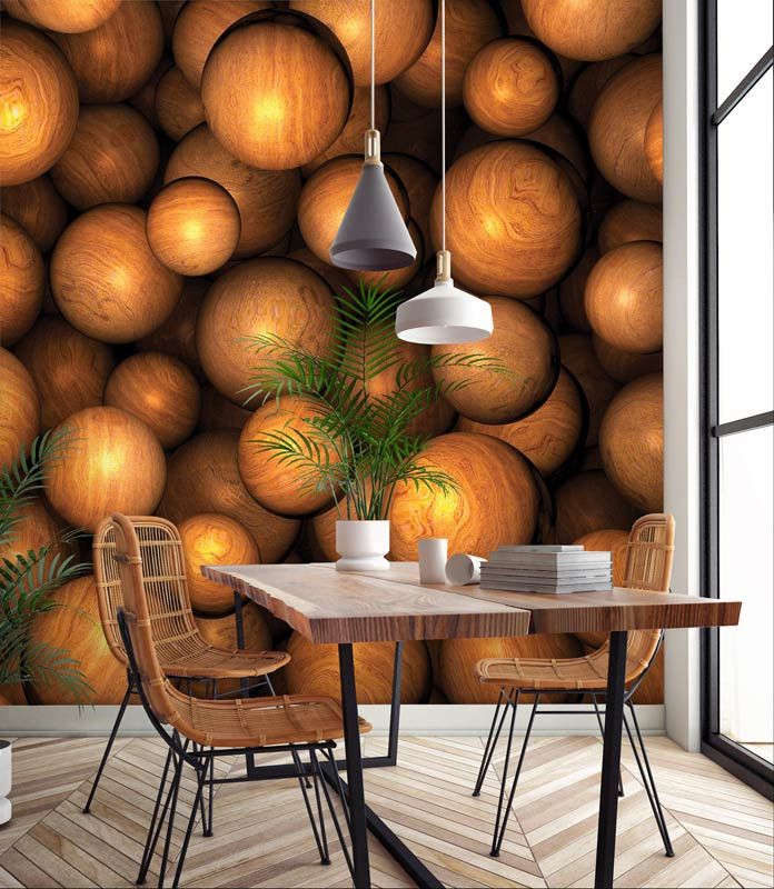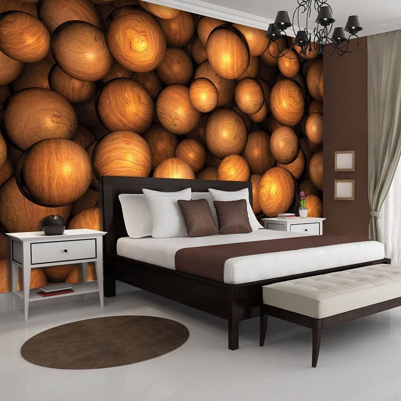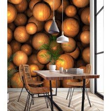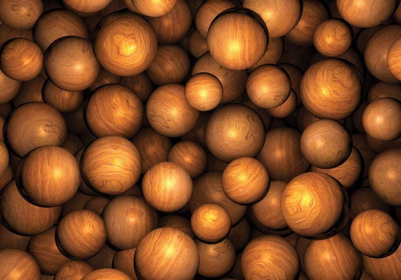 Abstract vlies fotobehang van allemaal bruine, houten ballen.