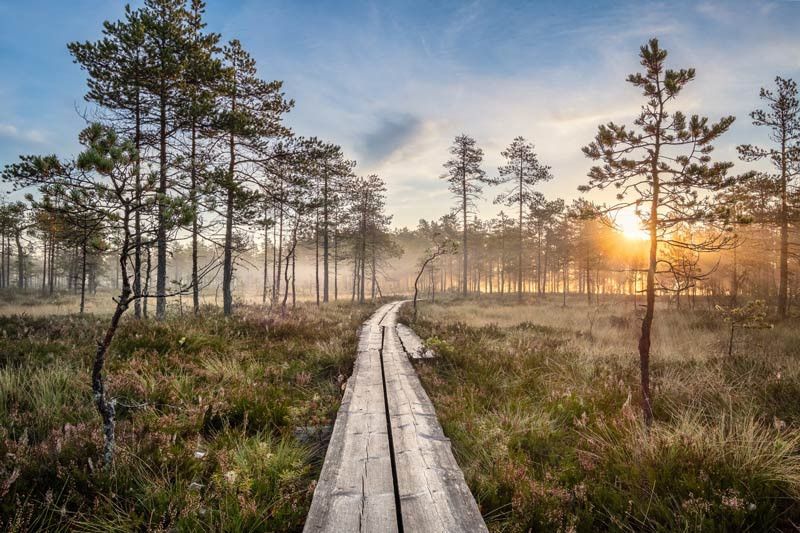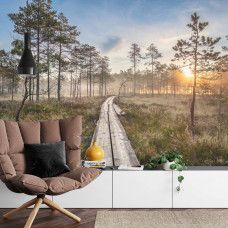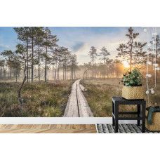 Wandel door de betoverende pracht van het bos met ons op maat gemaakte Fotobehang Houten Pad in het Bos. Dit sfeervolle ontwerp brengt de rust en sereniteit van een houten pad rechtstreeks in je interieur, waardoor elke ruimte een vleugje natuurlijke schoonheid krijgt.