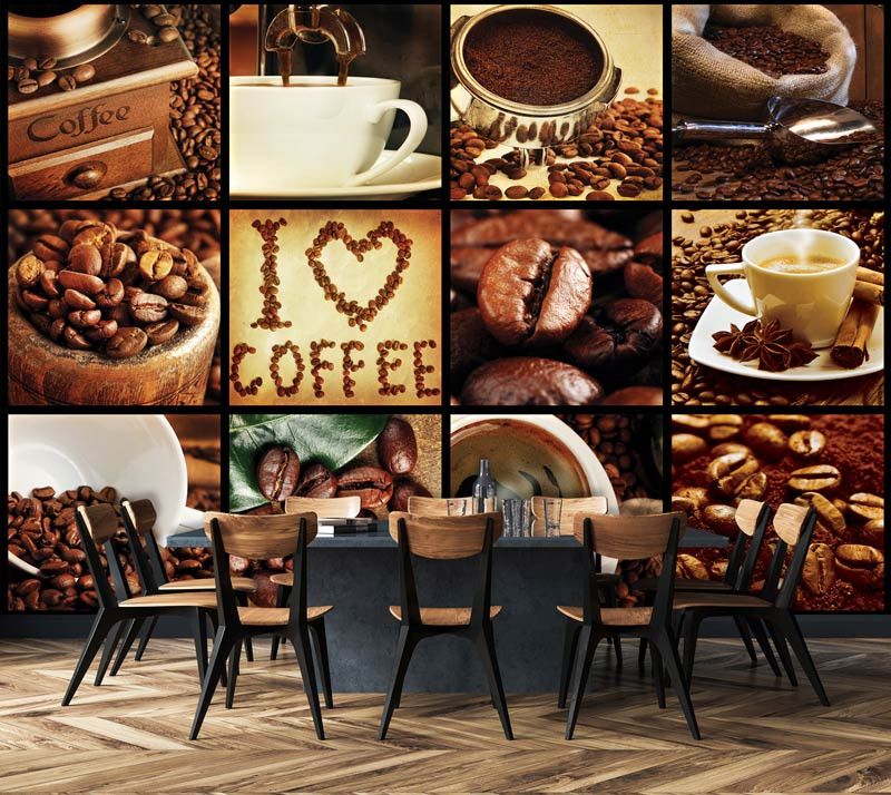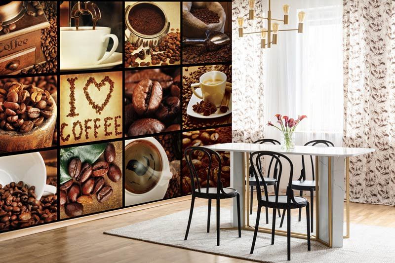 Vlies fotobehang van een prachtige collage met daarin alles voor de koffieliefhebber.